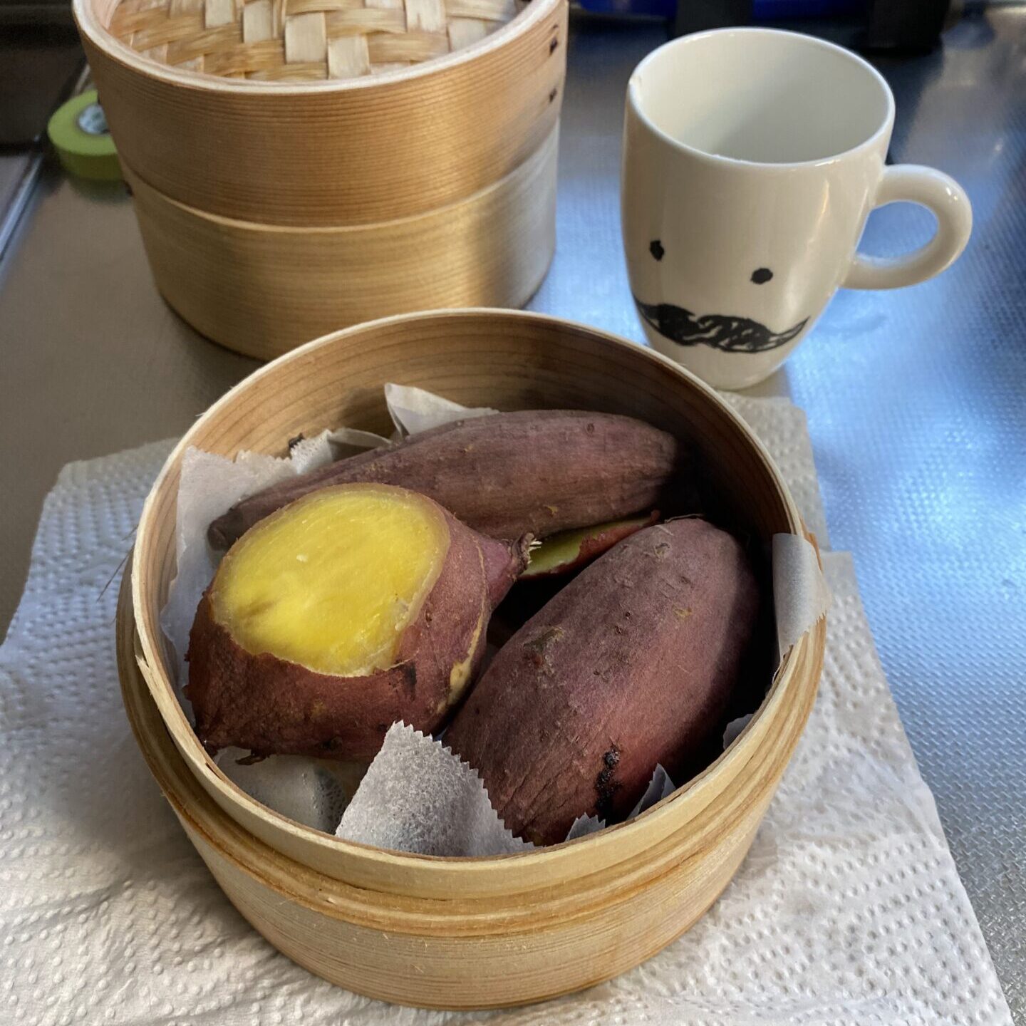 さつま芋を蒸すと、黄色く甘ーくなりますよ☺️
